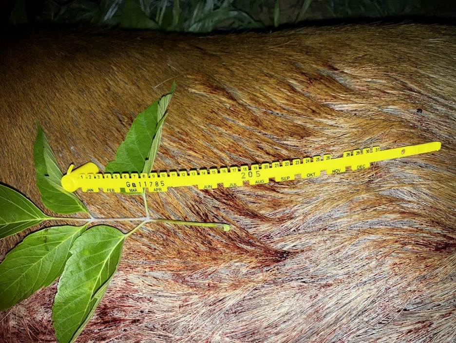 Fotografia č. 2: Čitateľne odfotená celá značka s vylomeným dátumom ulovenia položená